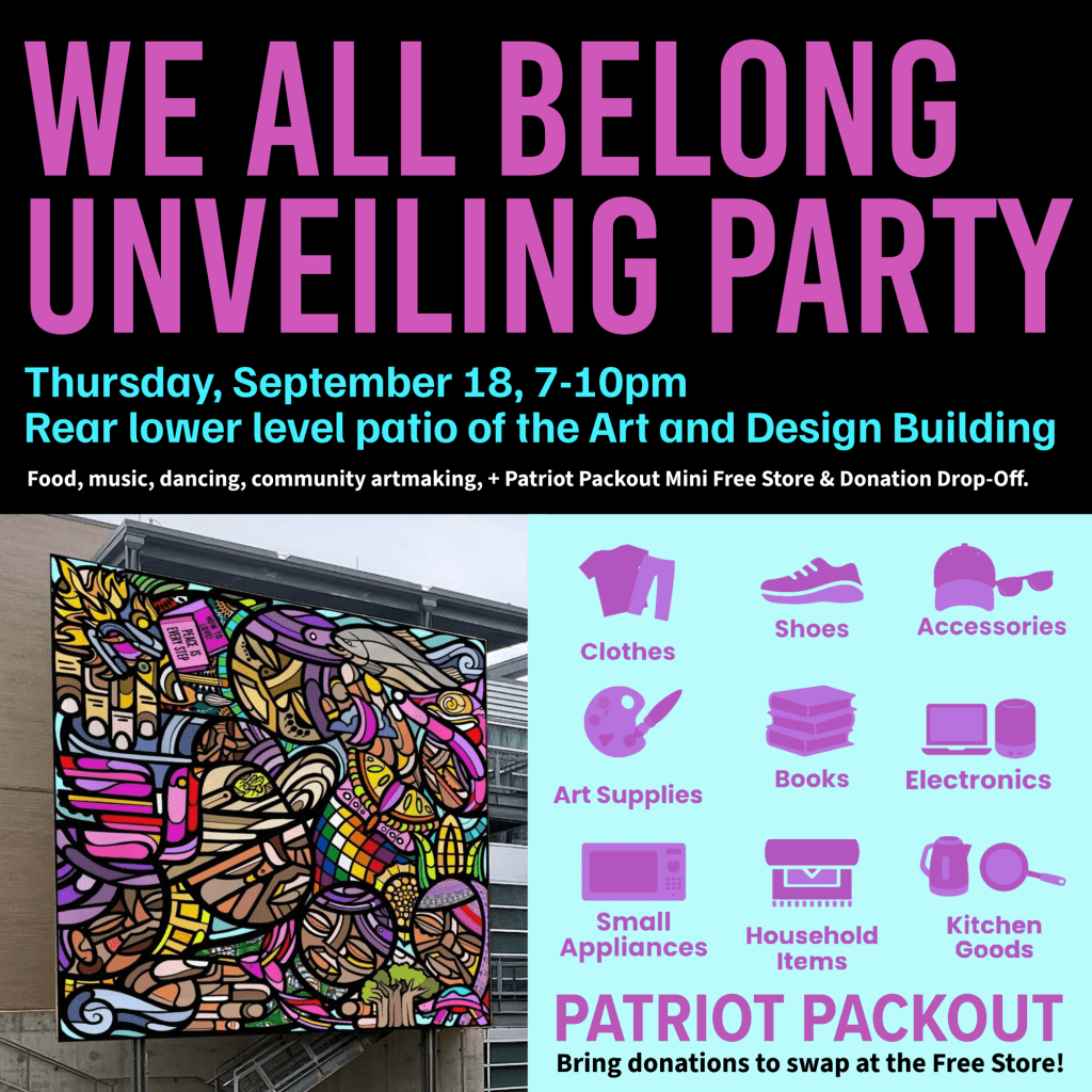Together, we will transform damaged clothing and textiles donated to Art on the Mend and the Patriot Packout Free Store into a collaborative artwork—an evolving fabric of patches and stitches where all hands and voices are welcome.