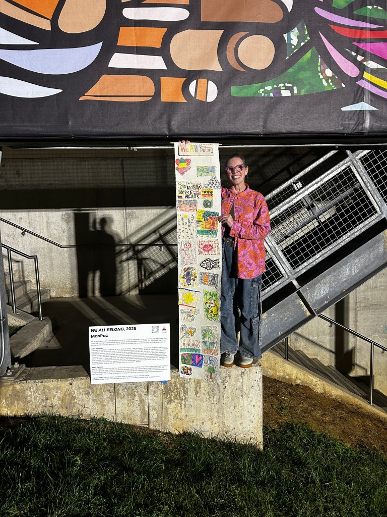 We had our first community art making program at George Mason University’s unveiling party for their new mural tapestry – We All Belong by MasPaz. I loved hanging out with everyone and creating in community. It was great to see people connect, find common interests, and share their stories. This is why I do this. 🥰 Thanks again, Mason Exhibitions, Patriot Packout, and all of the partners, for the collaboration!