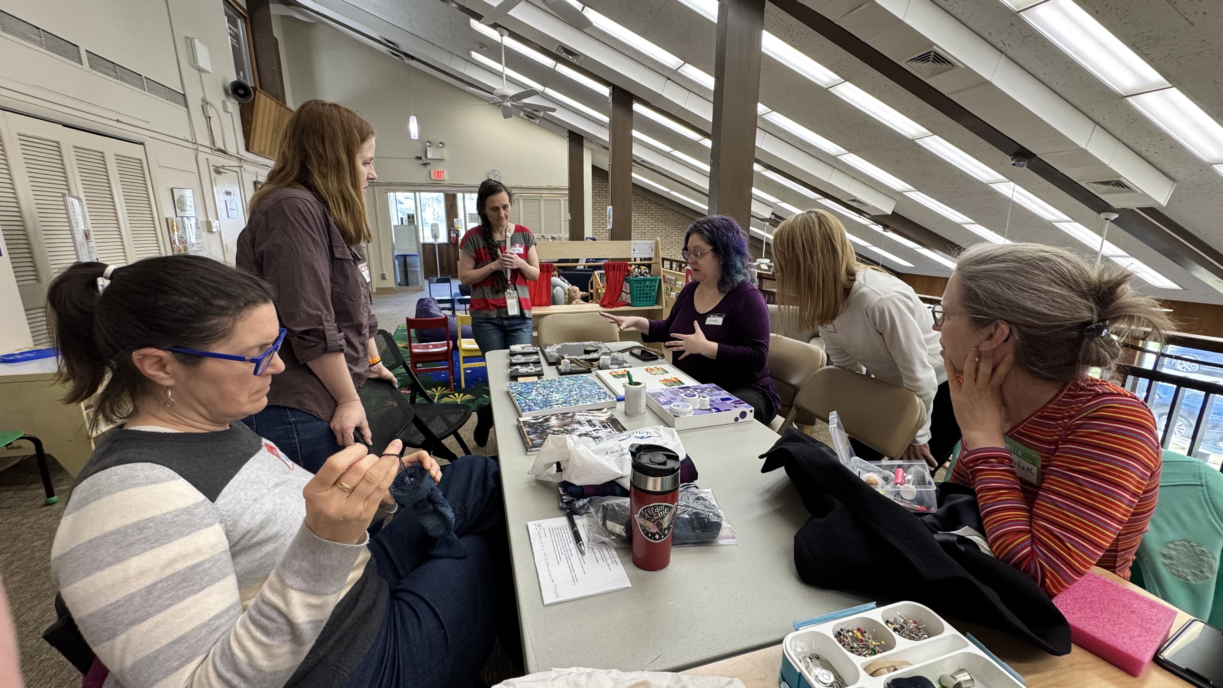 We were so grateful to have Anthony Heyward share his restorative process at our Cherrydale Library Visible Mending Circle this week. Anthony Heyward is a professor, community organizer, and Founder of the National Restorative Union (NRU). His work centers on building human connection through reflective practice, restorative dialogue, and transformative leadership development for teens and adults. When he asked “What keeps you coming back to the circle?” – community, mood boosts, and refreshed clothes were the highlights for many. Anthony’s work in emotional literacy and restorative practices brings people together, and I’m honored to collaborate with him through Art on the Mend and The National Restorative Union.